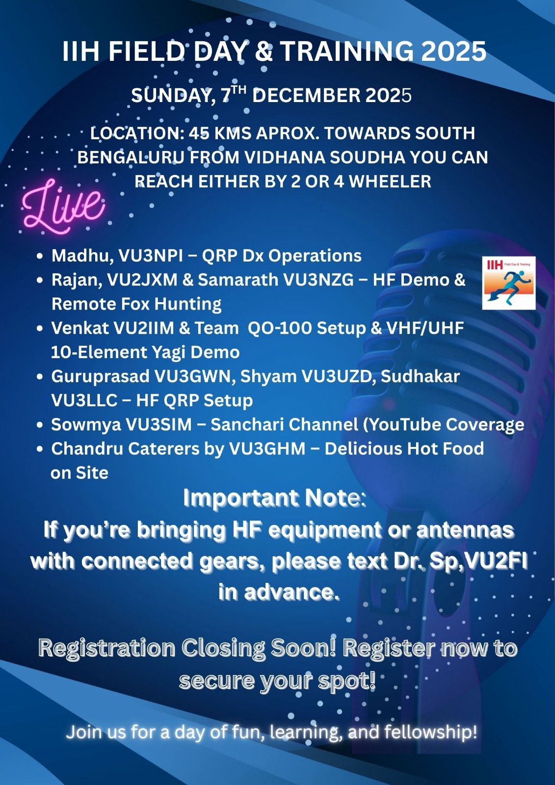 We have crossed 75 registrations for the IIH Field Day & Training 2025.